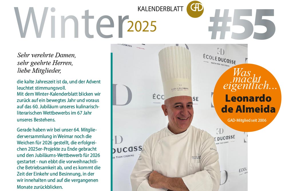 Was macht eigentlich Leonardo de Almeida? Halt... war da nicht was im Kalenderblatt #39 (Winter 2021)? Ja, richtig, die Erinnerung trügt nicht. Wenn aber ein Mitglied eine kulinarisch besonders wertvolle Neuausrichtung wagt (oder in eigenen Worten: "Reload der bisherigen Laufbahn") und der Name "Alain Ducasse" eine Rolle spielt, dann sind wir hellhörig. Sie auch?