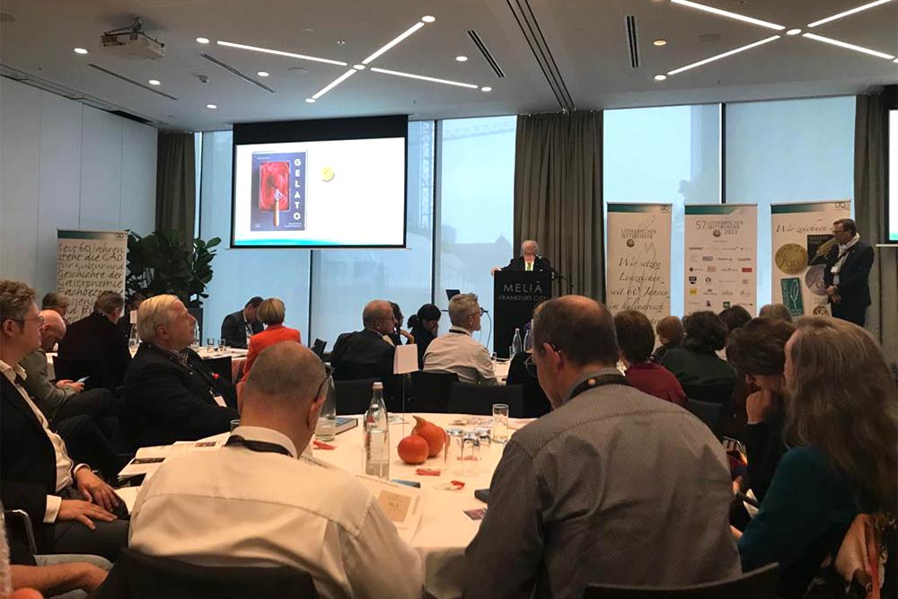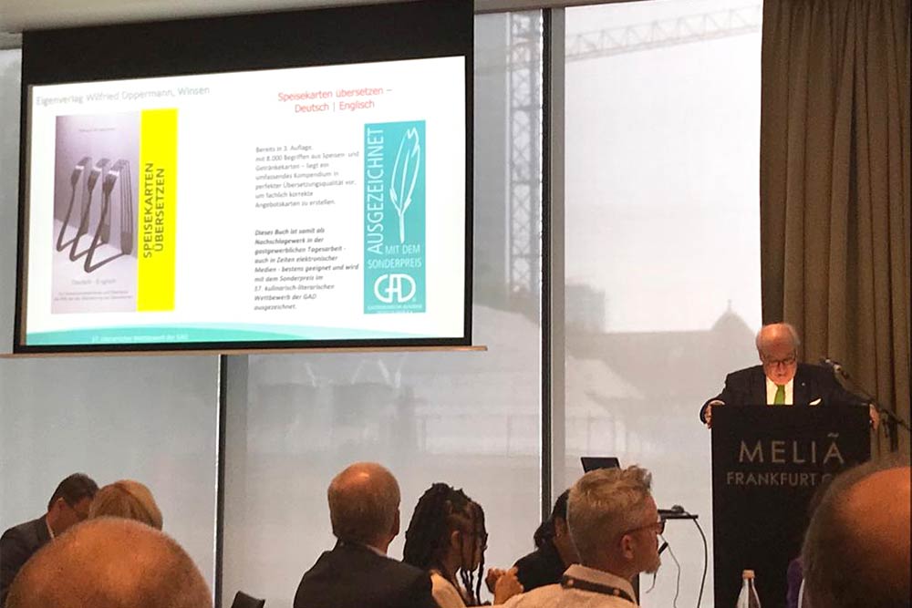 Bernhard Böttel (GAD-Präsident) führte während der Preisverleihung im MELIÁ Hotel - Frankfurt-City, aus, dass man gespannt ist auf die kommenden Themen und auf Nachfrage erzeugende kulinarische Impulse, die bei den Verlagen und den Damen und Herren Autoren derzeit in Planung sind und die GAD auch im nächsten Jahr, beim dann bereits 58. kulinarisch-literarischen Wettbewerb, wieder die großartige Leistung aller am „kulinarischen Genussbuch“ Beteiligten in der Ihnen gebührenden Form wertschätzen kann.  Ziel der GAD bleibt es, Verlagen und Autoren Anregungen zur ständigen Verbesserung der Qualität der Literatur der Kochkunst und Tafelkultur zu geben und sich insbesondere auch für die Optimierung von Lehr- und Fachbüchern der gastgewerblichen Branche einzusetzen.