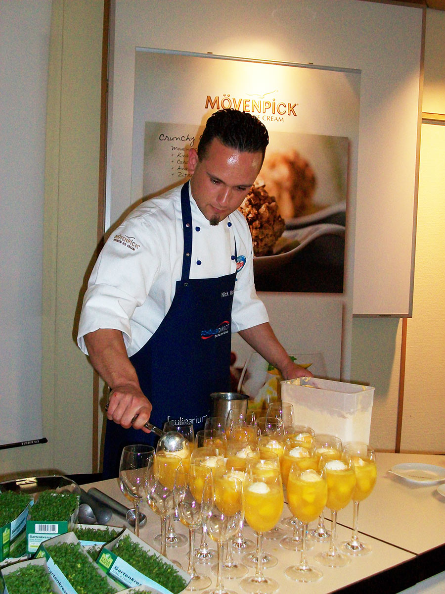 Höhepunkt des Seminares war die Exkursion zu Nestle-Schöller nach Nürnberg. Nach einem theoretischen Teil zur Speiseeisherstellung folgte von den Mövenpick-Profis eine hervorragend vorbereitete Verkostung interessanter Eis-Variationen: ‚Vanilleeis im Speckmantel, Süss im wilden Kressemantel, Gelbe Pflaume Tonkabohne in frittiertem Rucolamantel, Cashew Sauerrahm auf Staudensellerie‘ waren einige der nicht alltäglichen Angebote, die für außergewöhnliche Gaumenfreuden sorgten.
